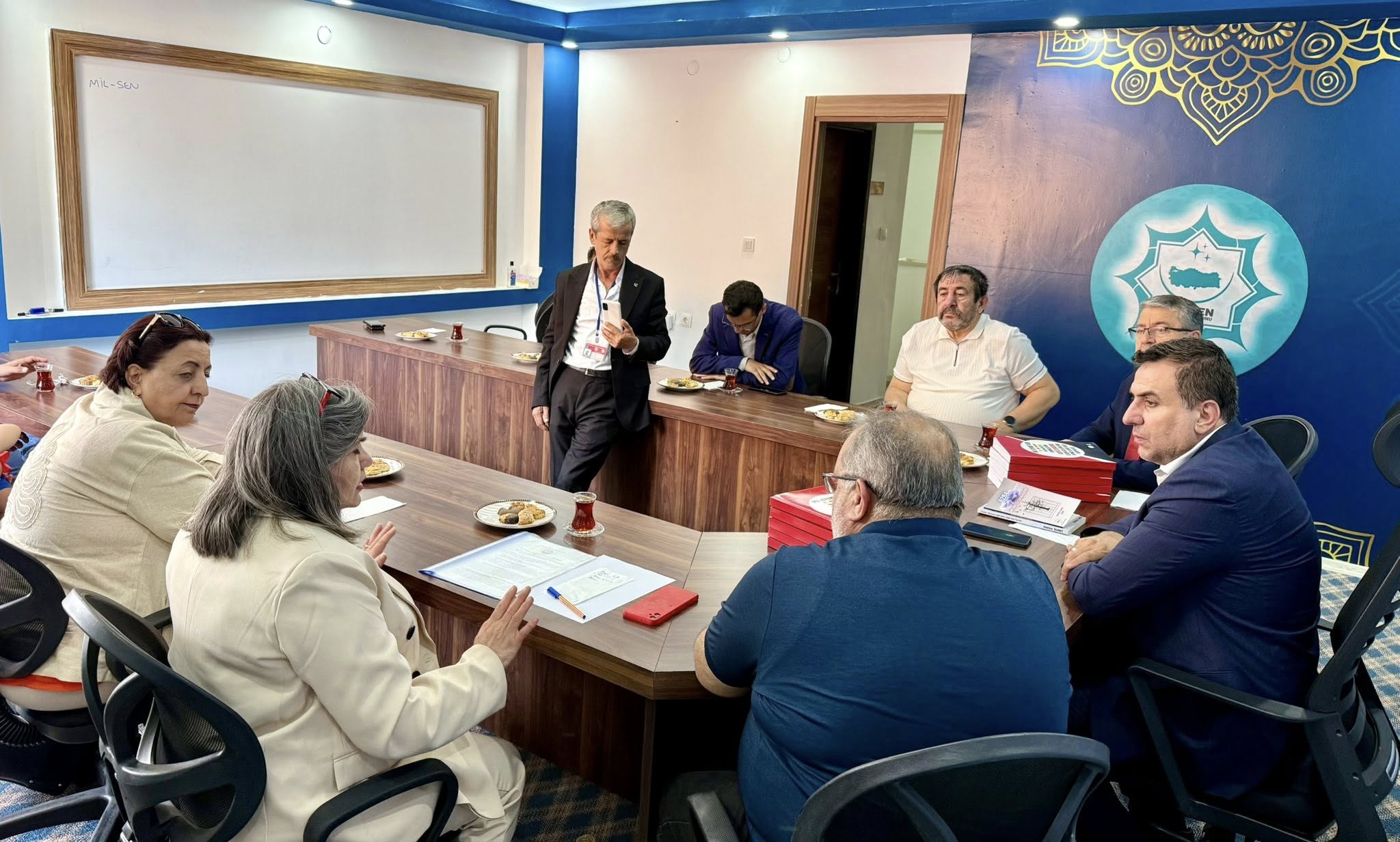 Aileyi Koruma Federasyonu heyeti, Mil-Sen Genel Başkanı Mücahit Çelik ve yönetimini ziyaret etti. Ziyarete Federasyon Başkan Vekilleri Mustafa Elidemir ve Hatice Sunci’nin yanı sıra, Kocaeli Aileyi Koruma Derneği Kurucusu Serdar Ağır, Genel Sekreter İsmail Kutluca, Basın Yayın Derneği temsilcisi Sinan Meriç, İstanbul Aileyi Koruma Derneği'nden Gülistan Arslan, Kadın ve Aileyi Koruma Derneği'nden Şenel Meriç, Spor Federasyonu Başkan Vekili Selim Elidemir ve kurucu üye Yunus Çakar katıldı.
