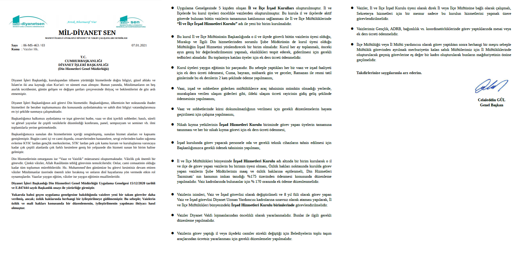 - Vaaz ve sohbetlerinde kürsi dokunulmazlığının verilmesi için gerekli düzenlemelerin hayata geçirilmesi için çalışma yapılmasını,